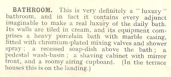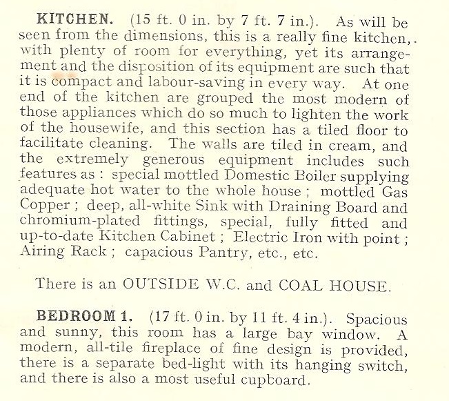 There’s quite a lot of information in the brochure about the kitchen and its many appliances to lighten the load of the housewife. ActorLaddie, being the housewife in question, agrees that there are many appliances though we have trouble laying our hands on the mottled gas copper.